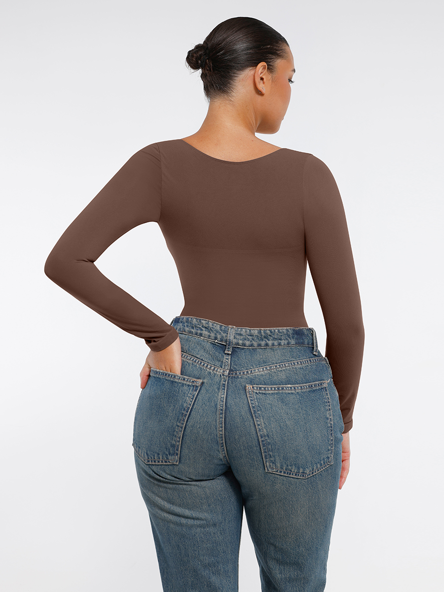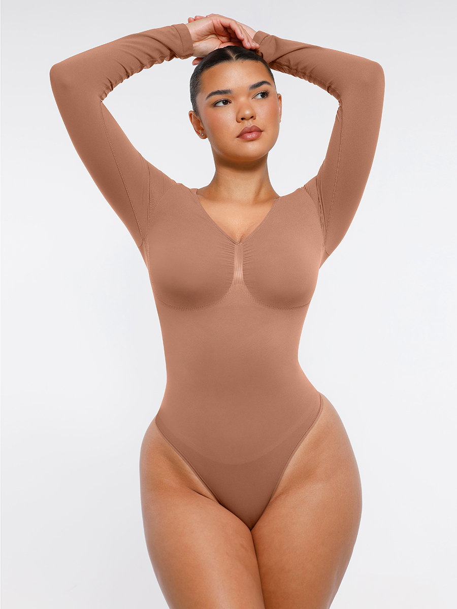 Sculpting long-sleeve bodysuit with built-in chest support, a seamless thong back, and subtle butt-lifting fit—designed for all-day comfort and everyday elegance. Perfect for shaping your waist, abdomen, and enhancing your chest curves naturally.