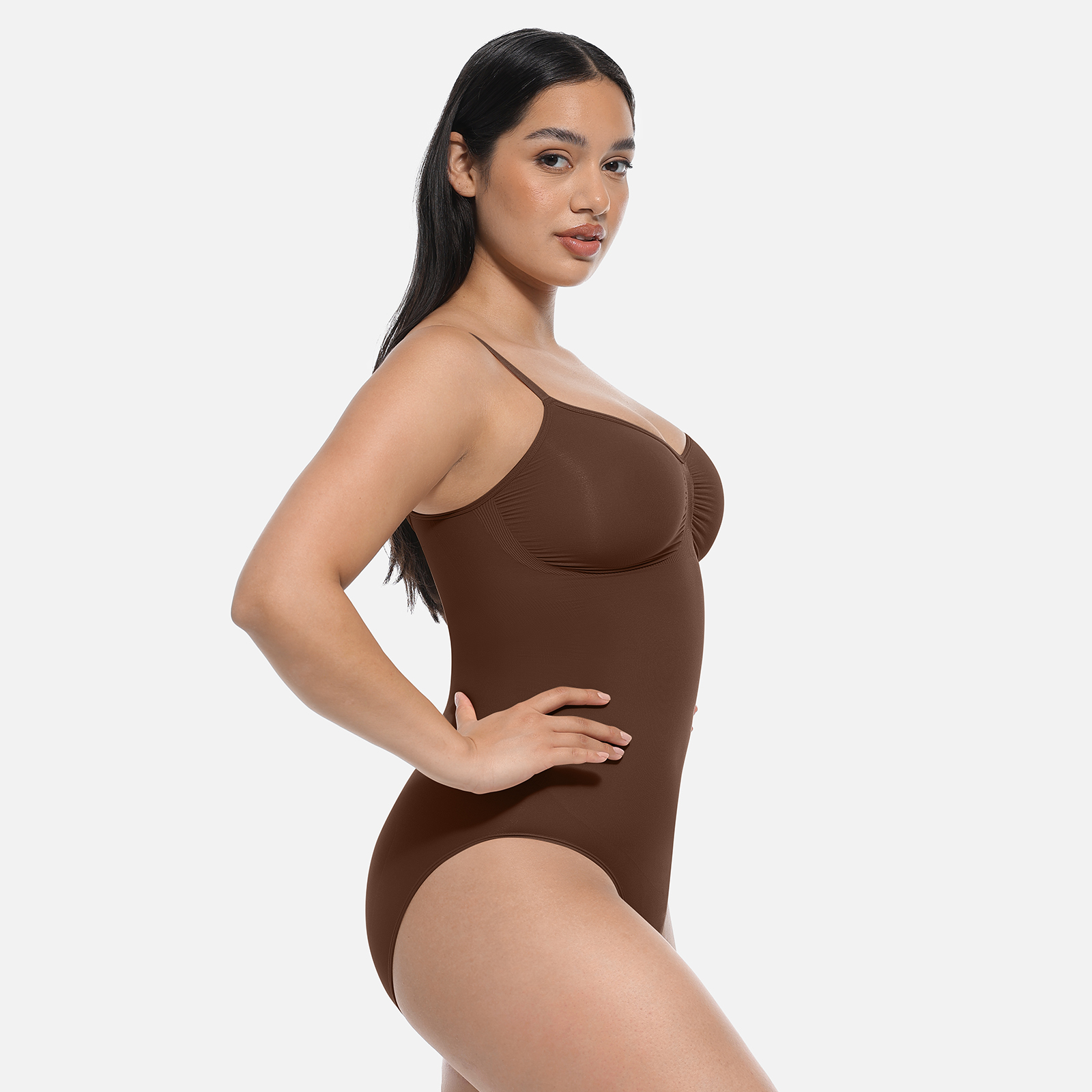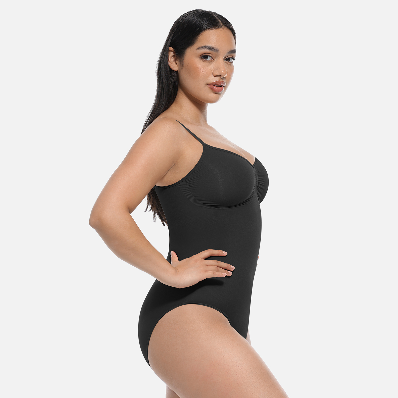 Couture-inspired shapewear bodysuit with firm compression, hip-enhancing design, and precision contouring for a smooth, sculpted silhouette.
